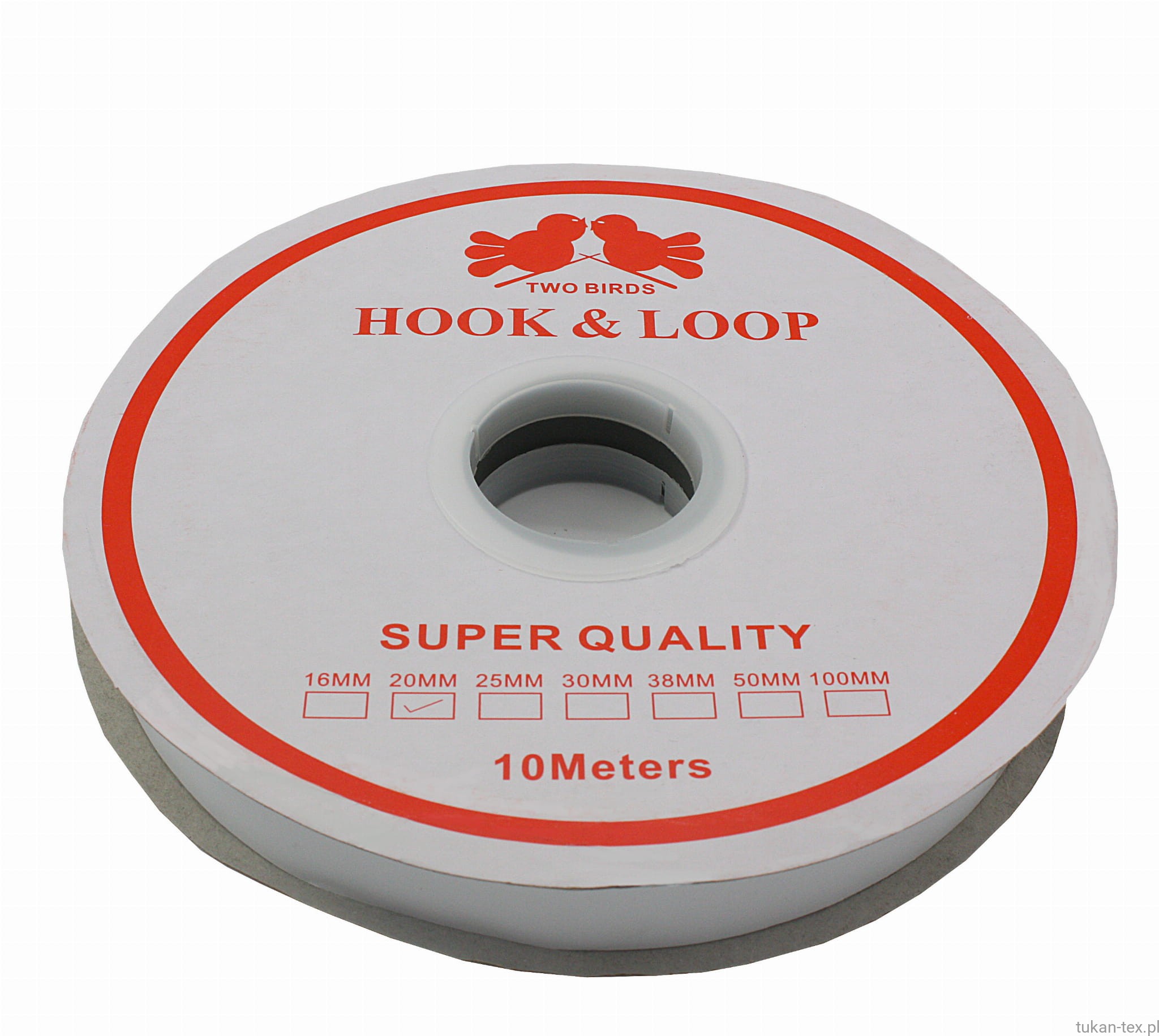 Praktyczna taśma rzepowa z klejem o szerokości 20 mm i długości 25 m, idealna do mocowania różnego rodzaju przedmiotów bez użycia gwoździ, śrub czy zszywek. Strona z haczykami (część męska) przeznaczona do łączenia z częścią miękką (pętelką).